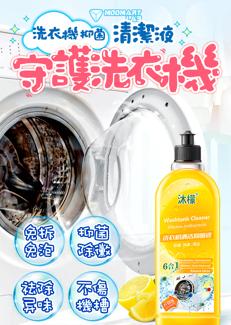 7分鐘前還洗衣機一個清新 ,一鍵免浸泡 洗衣機抑菌清潔液 淡淡清香_你值得擁有 - 【超值特惠】5入組 NT$1190